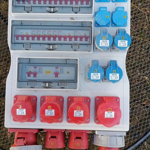 Specifikationer: 16A med 6 udtag, herunder CEE-udtag og danske stikkontakter, samt automatsikringer og fejlstrømsafbryder (HPFI).