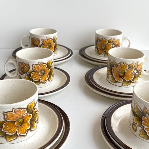 Porcelæn, Musselmalet kaffestel, English Staffordshire, Musselmalet engelsk Churchill stel.
