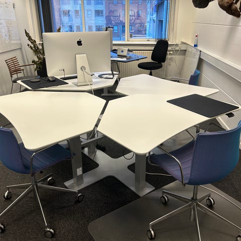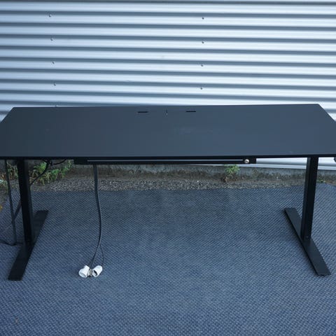 Dencon Delta elektrisk hæve-sænke skrivebord(Linak) med antrasit linolium bordplade og sort stel. Bordet har justerbar højde, hvilket gør det egnet til både siddende og stående arbejde. Størrelsen er 180X100/80. Designet til kontorbrug og hjemmekontor. Der er kabel til ledningerne. 1 stk venstrevendt og et højrevendt bord ideelt til at stå overfor hinanden. Prisen er per stk, listepris er 9.545 DKK. Ved køb af begge borde er stk prisen 4.000DKK