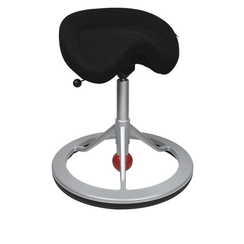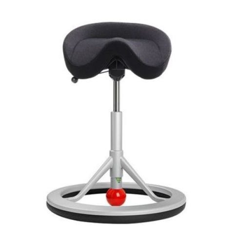 Back App stol i sort Nordic Wool, uldstof, med sortgråt stel og med en sort kugle. Når du sidder på BackApp stolen, træner du de muskler der støtter rygsøjlen. Du bliver derved stærkere i ryggen og kroppen fungerer optimalt. Det unikke ved BackApp er kuglen som kan justeres, alt efter hvor bevægelig en stol man ønsker. Jo længere kuglen justeres ud, jo mere bevægelig er stolen.
