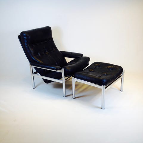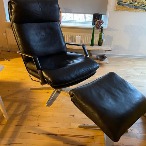 Søren Lund SL330 hvilestol m/skammel i sort solid læder.Nypris 39.869,-