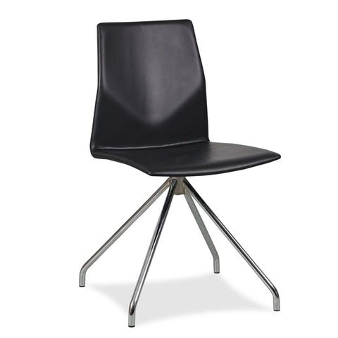 Moderne konferencestol fra HOLMRIS B8, model Groovy cc. Stolen står i sort læder og armlæn i børstet stål. Stolens højde kan justeres fra 42 cm - 60 cm.