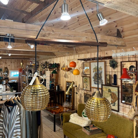 Anden loftslampe, Palisander, Retro lampe fra 60 erne af palisander med 3 glas skærme...