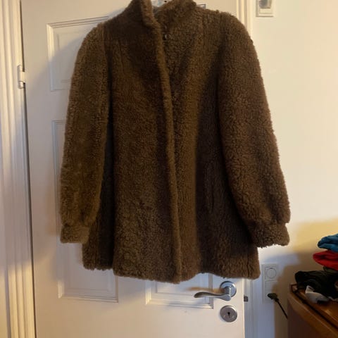 ægte pelsfrakke, brun pels, vintage pels, retro pels, pelsfrakke dame, varm vinterfrakke, syprojekt pels, upcycling pels, genbrug pels, str. M L XL, redesign pels