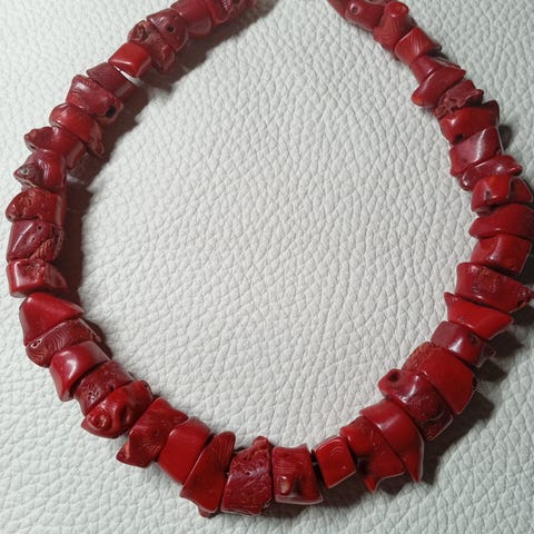 Opdag skønheden i naturmaterialer med denne røde koral halskæde i forløb med sølvlås – et eksklusivt og håndlavet smykke, der kombinerer autentiske koraller med en elegant låsemekanisme i ægte sølv.