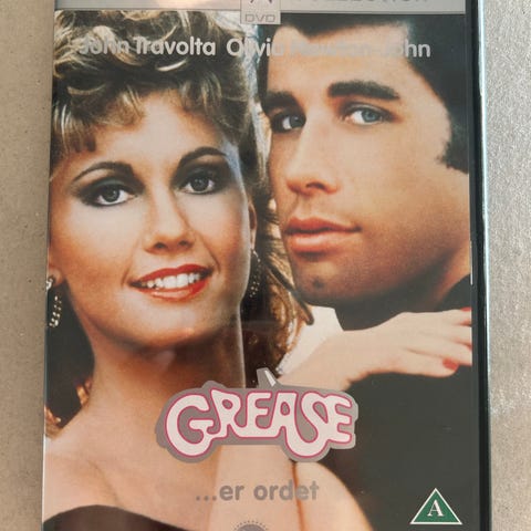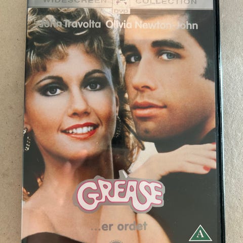 Grease DVD med John Travolta og Olivia Newton-John. Musikfilm i original udgave med cover og sangbog.