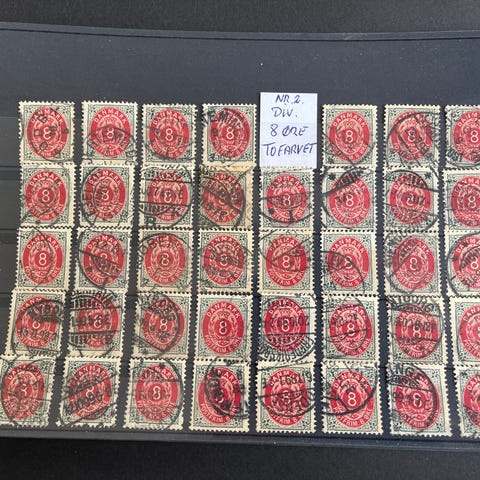 Danmark. Tofarvet. Div. Stemplet 4 øre nr.2.