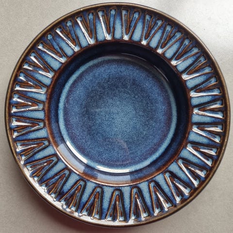 Flot blå 5 kantet glas fad / skål.