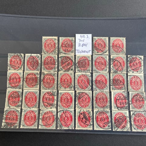 Danmark. Tofarvet. Div 8 øre stemplet. Nr.2.