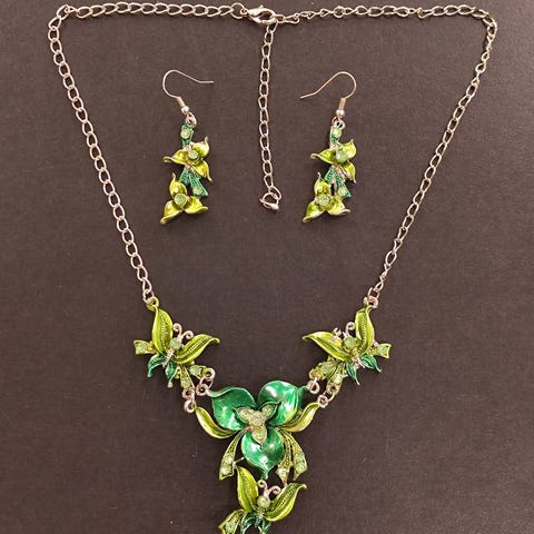 Blomster smykkesæt fuchsia Lavet af polymer ler.