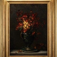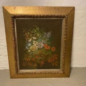 Blomstermalerier.Usigneret men betegnet bagpå 28 maj 1850.Malet på papir,der ikke er klæbet op på bagepladen.Nogle retoucheringer.Fin samtidsramme