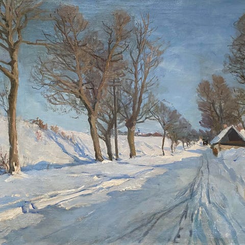 Næstved maleren Albert Svendsen senere Svendsen. Et vinterlandskab signeret med monogram ikke dateret.Malet på træplade.Pæn bladsølvramme.