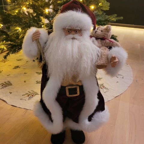 Julemand, Stor og bedårende julemand i ler med lygte og sæk på ryggen.