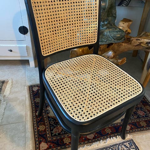 4 stk flotte stole i sort træ med flet til umiddelbart 1.000 pr. stk. Købt til spisebord men passer desværre ikke alligevel. Derfor de sælges. Højde på armlæn 68 cm og 50 cm i længden. Sædet er 51 cm dybt. Højden på stolen er ca. 86 cm. 2.500,- pr. stol fra ny. Byd gerne :)