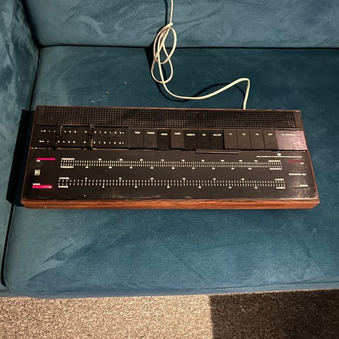 Radioen har flere knapper og drejeknapper til indstilling af frekvenser og lydstyrke.
