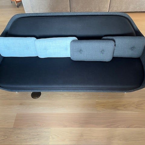 Fritz Hansen Favn sofa betrukket med gråt stof. Sofaen er fra 2014 og fremstår i super flot stand dog med en lille plet på ryggen og let slid på oversiden af ryggen, da sofaen har stået op med en væg.