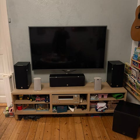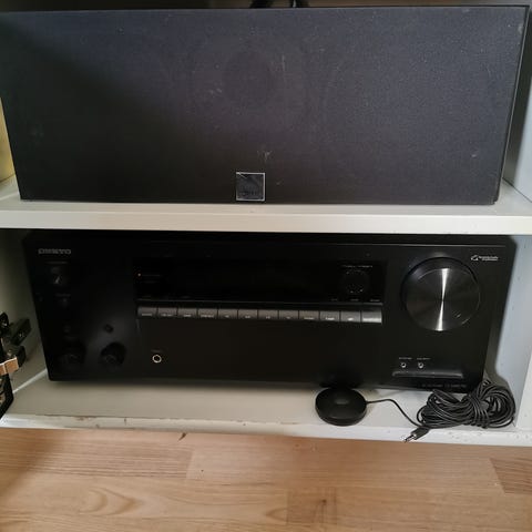 Rigtig god og velspillende Onkyo receiver med 5Hdmi indgange og 1 Earc indgang, mikrofon til kalibrering af lyden i forhold til lytte pladsen, 2 Dali Zensor 5 gulvhøjtalere 1 Dali Zensor center højtaler og q Dali E-12F sub, Forstærkerdelen i Suben har været gået, derfor er der kommet nyt forstærker del og kort i, dette kort er ikke fra Dali men spiller fantastisk det har en udgangs effekt på 300W ved 4 ohm, der er masser af tilslutnings muligheder, Mikrofon til kalibrering medfølger ligeledes medfølger der fjernbetjening, højtaler ledning og diverse HDMI kabler.