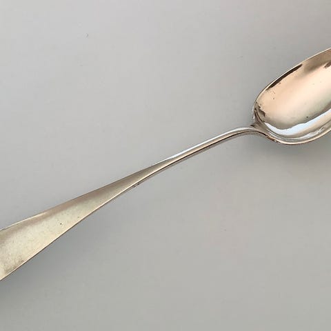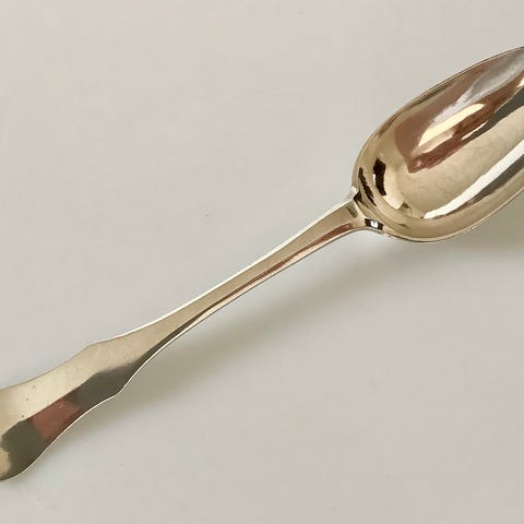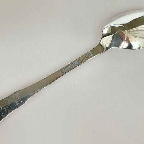 Rottehaleske i sølv fremstillet af den københavnske guldsmed Jens Pedersen Komløv, borgerskab 1713, død 1750. Mangel af by- og guardeinstempler kan skyldes et reparationsarbejde - de det sidste foto. Vægt: ca. 51 gram. Længde: ca. 18,4 cm. PRISEN ER INKLUSIV EMBALLERING OG FORSENDELSE.