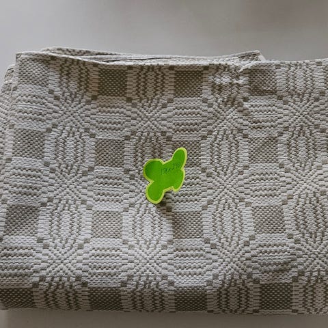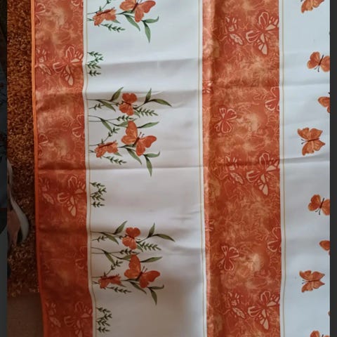 Stor flødefarvet blød bomuldsdug med beigefarvet (guld?) Paisley mønster. Måske brugt et par gange, nyvasket og ingen pletter at se :-)