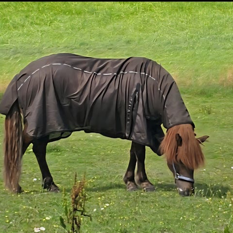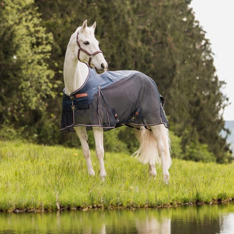 Insektdækken med regn over ryggen sælges fra HorseGuard. Størrelse 105 cm.