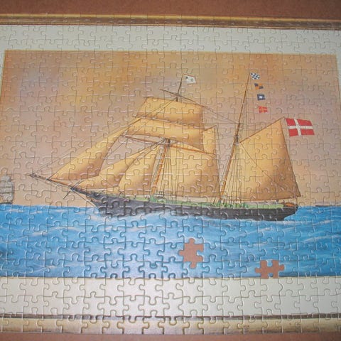 2 stk komplette puslespil på 500 brikker fra Irma med motiver af gamle sejlskibe.