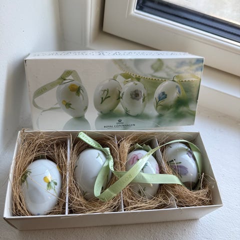 Da det ene æg har en hårrevne - som ses på billede nummer 2 - sælges de for 1.500. Almindelig pris imellem 2.000 - 2.500.