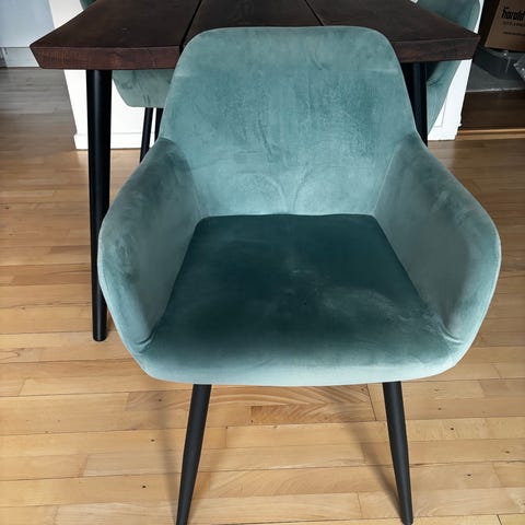 Sælger mine flotte OMG spisebordstole i farven petroleum.