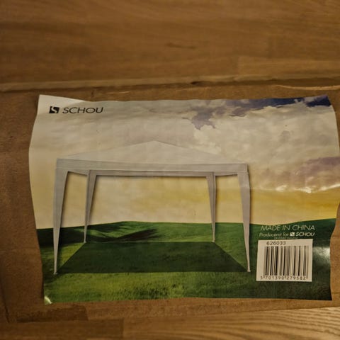 Udendørs pavillon telt med målene 3x3 meter i grøn farve fra Harald Nyborg. KUN TAG - INGEN STEL. I bærepose med håndtag. Overskud efter storm. Byd.