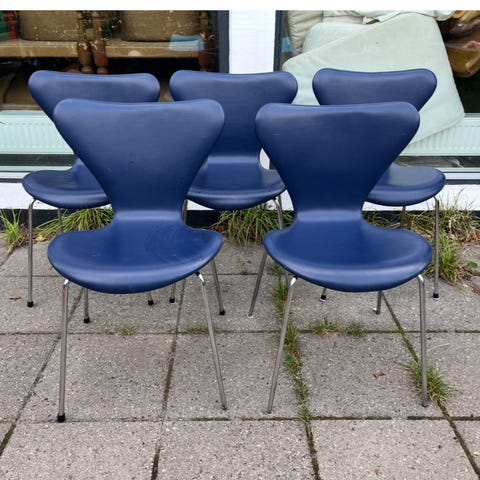 5 styk 7’er stole i det flotteste Kongeblå læder, stolen er i fin stand uden bløde rygge!