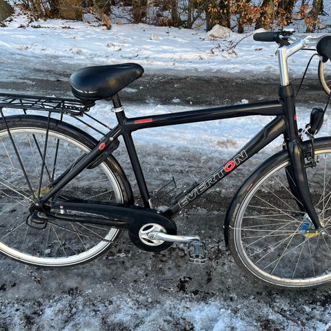 Stor og dejlig kurv bag på cyklen. Cyklen sælges med alt inkluderet (kurv, lygter osv.)