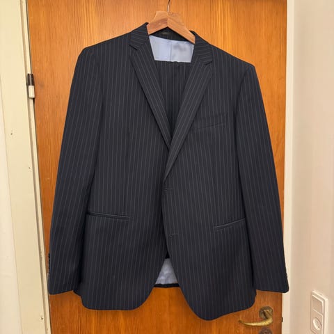 Her sælges et jakkesæt med Prins of Wales fra Skrædder Star Tailor i Phuket Thailand. Stoffet er en medium til tung vægt og i en fantastisk grå med Prins of Wales med rød. 100 % uld. Jakken har en 2-knaps konfiguration med 2 slids. Meget god stand.