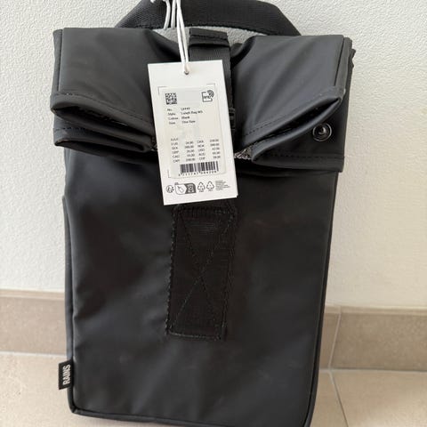 Rains Lunch Bag W3 i sort farve. Tasken har RFID-beskyttelse og er designet til opbevaring af mad. Den er lavet i vandafvisende materiale og har en rummelig indvendig del med isolering, der holder indholdet køligt eller varmt. Størrelse: One Size.