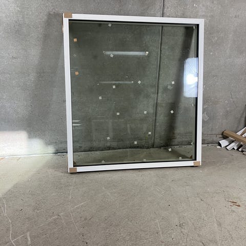 Sidehængt faskarm vindue med 2 ruder i træ. 3-lags energi glas, med klemlister i alu. Vindues åbning måler 74cm fra midt karm til midt karm. Monteret med pasville greb. udfræsning til bundstykke.