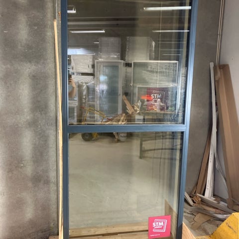 Udestue element i 2 fag, hvori nederste fag er topstyret. Vinduet er i træ/alu med 3-lags energirude. Produceret af STM vinduer. Der er udfræset not i begge sider og bunden for lysning og bundstykke.