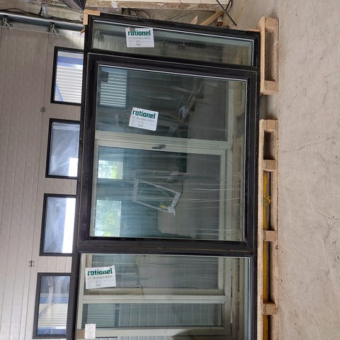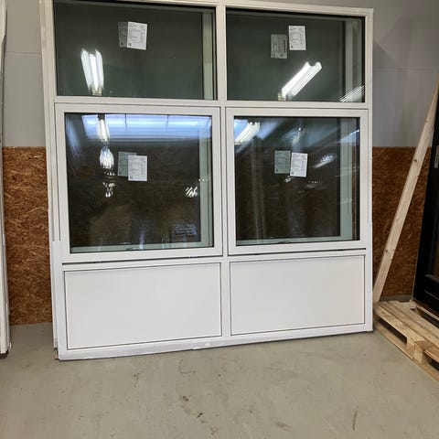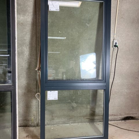 Udestueelement i træ alu med 3-lags satin mat energi rude og påmonteret paskvilgreb. 3 ruder. Oplukkes øverst.