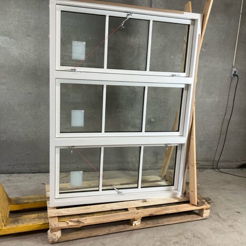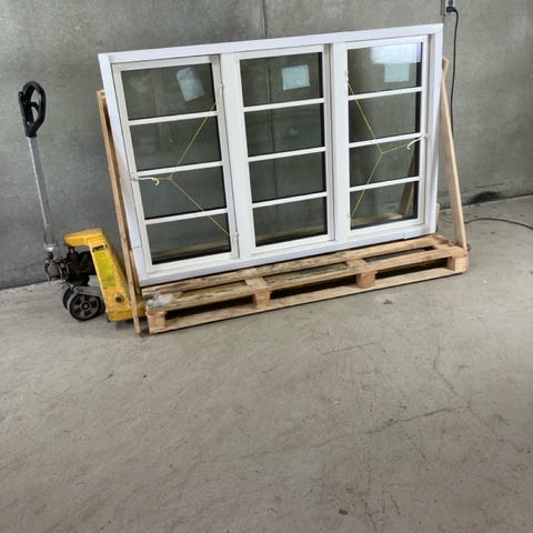 Bondehusvindue i træ med 3-lags energirude, hævet sprosse, anverfere, stormkrog og fabriksforeborrede monteringshuller. Det er med udfræst not på alle fire sider for lysning og bundstykke.