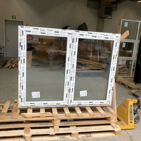 Dreje-kip vindue i plast med 3-lags energi rude. Udført i Rehau PVC profiler. Greb medfølger løst.