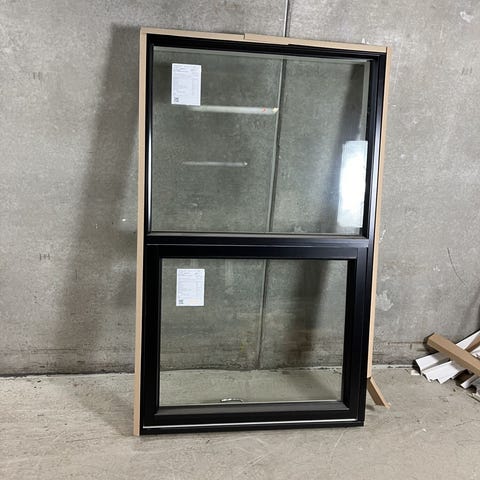 Fastkarm-topstyret vindue i træ/alu med 3-lags energirude og friskluftsventil. Nederste rude til venstre set indefra er topstyret, resten er faste. Der er udfræst not i top, bund og venstre side set inde fra, for lysning og bundstykke.
