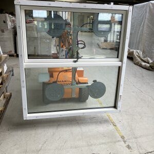 Fastkarm-topstyret vindue i træ med 2-lags energi rude og friskluftventil.