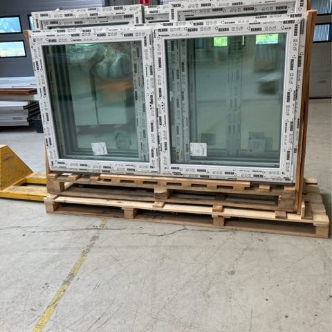 Dreje kip vindue i plast med 2-lags energiruder, 2-fag. Produceret i Rehau PVC profiler. Greb medfølger løst.