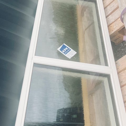 Gavl vindue i træ/alu med 3-lags energiruder. 3 faste ruder og 1 topstyret rude placeret nederst i midten. Brede 365,5/241/152,5 X højde 160/122 cm. Overfladeridser udvendigt på alu.