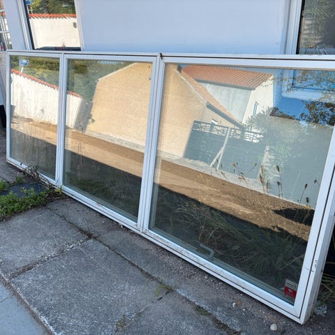 Vinduesparti med et fast og en sidehængt ramme, Monteret med greb med nøgle og ventil til topkarm,
