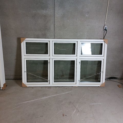 Dannebrogs vindue i træ alu med 3-lags energi ruder, paskvilgreb og friskluftventil. 3 fag 6 ruder. Midterpartiet er fast.
