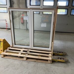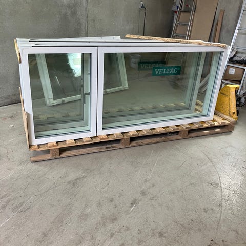 2-fags sidehængt/fastkarm vindue i træ/alu med 3-lags energiruder og friskluftsventil. Oplukkes nederst. Greb medfølger ikke. Er lidt beskidt.