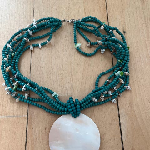 Lang halskæde med muslingeskaller natur strand 88 cm