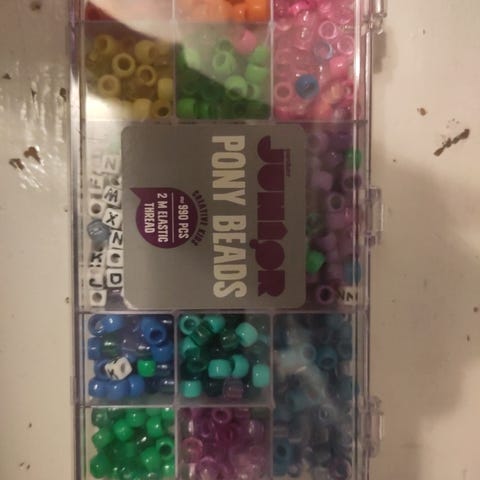 PlayMais Kreativ Sæt med farvede perler i forskellige nuancer, egnet til kreative projekter og hobbybrug. Sættet indeholder perler i farver som orange, gul, grøn, lilla, sort, hvid og pink, der kan bruges til at skabe forskellige former og mønstre.