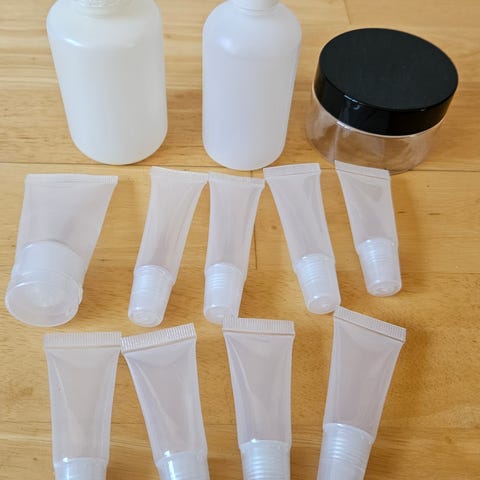 Metalbøtter, æsker og flaske