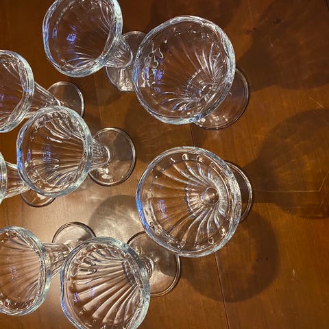 Is glas, dessertglas, dessertskåle, glas til forret, glas til drinks med sugerør, glas.