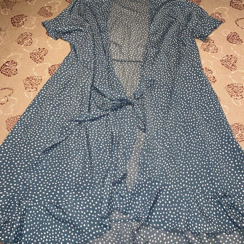 Vero Moda Hverdagskjole i størrelse M, farven blå. Kjolen har en dyb V-udskæring og bred strop, med en løs og behagelig pasform. Materialet fremstår let og velegnet til hverdagsbrug.