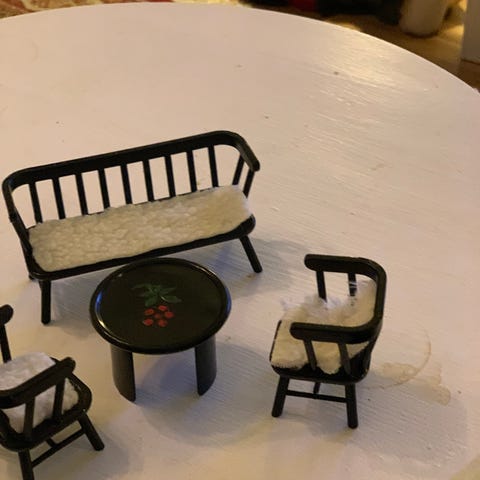 Fin rød stol og rundt bord